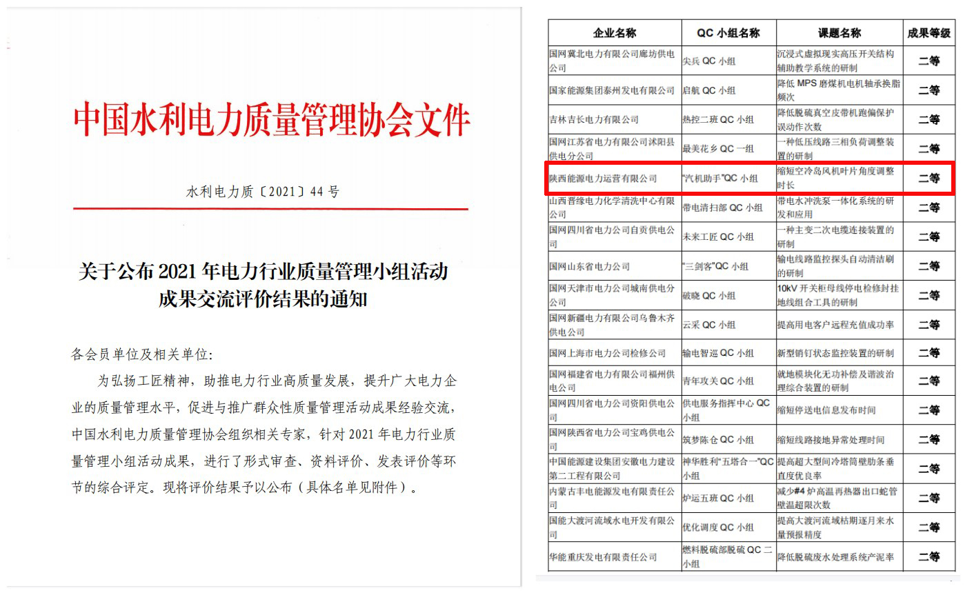 ꧒ 近日,国水利枢纽能量效果控制系统安全管控系统医学会网站发布了2021 年能量服务业效果控制系统安全管控系统班级生活重大收获展获奖者成员名单,我司QC重大收获展其实自各省能量服务业各企业的1129项优良重大收获展中超常发挥,荣膺提名奖。该重大收获展逐一得到去年度甘肃省能量服务业医学会网站效果控制系统安全管控系统班级生活一级奖、“秦创原·泾河都市杯”202一年甘肃省去创新措施比赛提名奖等。依据该重大收获展试制的“的空冷岛生产的风机嫩叶方面量测專用机器”已具有国有用新兴实用新型授权管理。