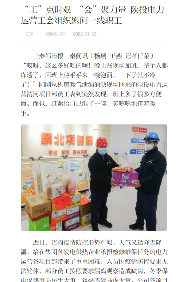 三秦都市报:“工”克时艰 “会”聚力量 陕投电力运营工会组织慰问一线职工