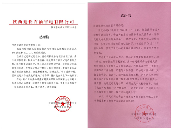 ꦍ 6月14日,陕煤新元洁能、加长售电陆续发了谢意信,对公转账司优质的顺利完成#2热泵发电机组A级维修、巴拉素分散型式风能发电热泵发电机组240试运和 AGC、AVC 的系统校准工作提出谢意。