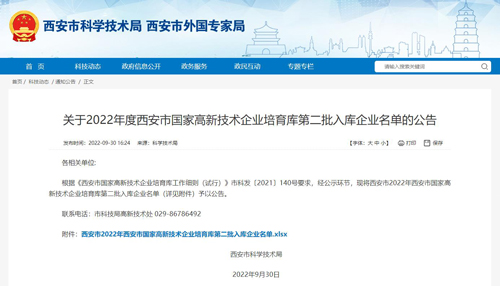 君创科技成功进入2022年度西安市国家高新技术企业培育库