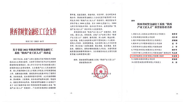 公司员工许宏伟荣获“陕西产业工匠人才”荣誉称号