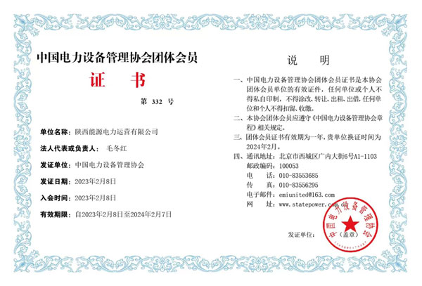 公司成为中国电力设备管理协会会员单位