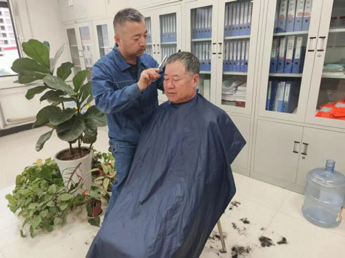 该施工单位退休职工曹文华夸道:“步师理的发形干净又干净利索,别提有多理念了!”
