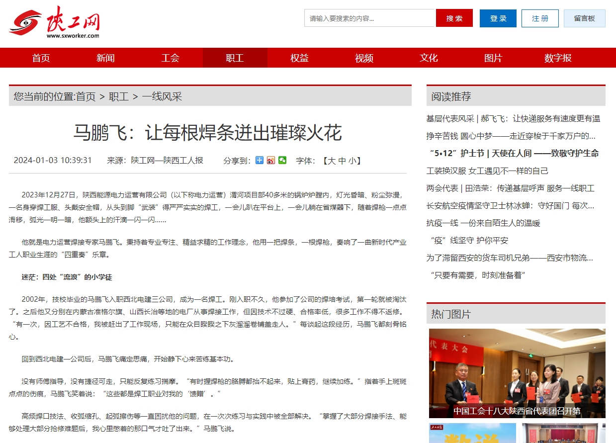 陕工网:马鹏飞让每根焊条迸出璀璨火花