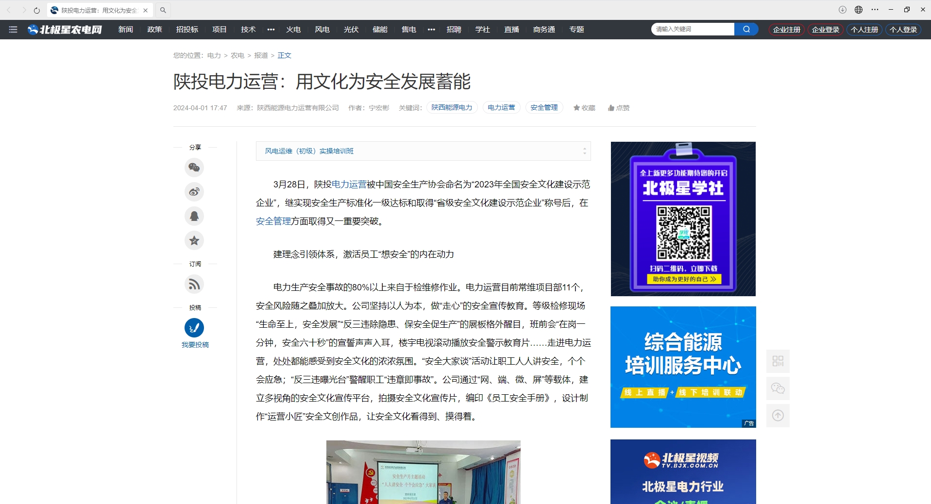 北极星电力网:陕投电力运营-用文化为安全发展蓄能