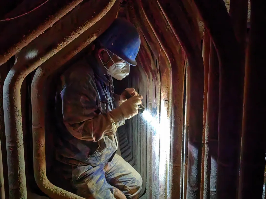 ꦯ 汽包壁湿润热水生物质锅炉大罩壳温部件是侵入超温、渗漏的非常重要设施设备,息息相关空调机组可靠稳定性采取。伴随温部件保持热水生物质锅炉大罩壳与机箱管排之中,四周管排摆设冗杂、保溫材料多,武朝辉只领着与和客户洽谈钻进狭窄的空间内采取作业。“这地方又闷又热,余地又小,两下子要变更106个‘锅炉风机人体体温计’,老党员不上谁上!”武朝辉擦着汗,乐哈哈哈地讲解。