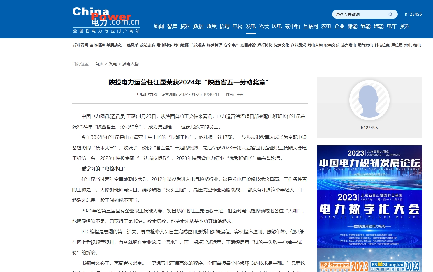 中国电力网:陕投电力运营任江昆荣获“陕西省五一劳动奖章”