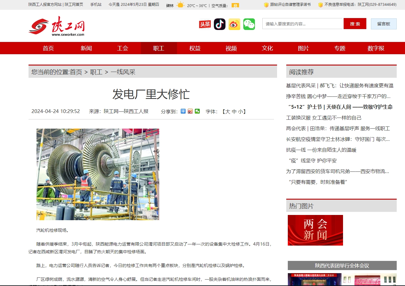 陕西工人报:发电厂里大修忙
