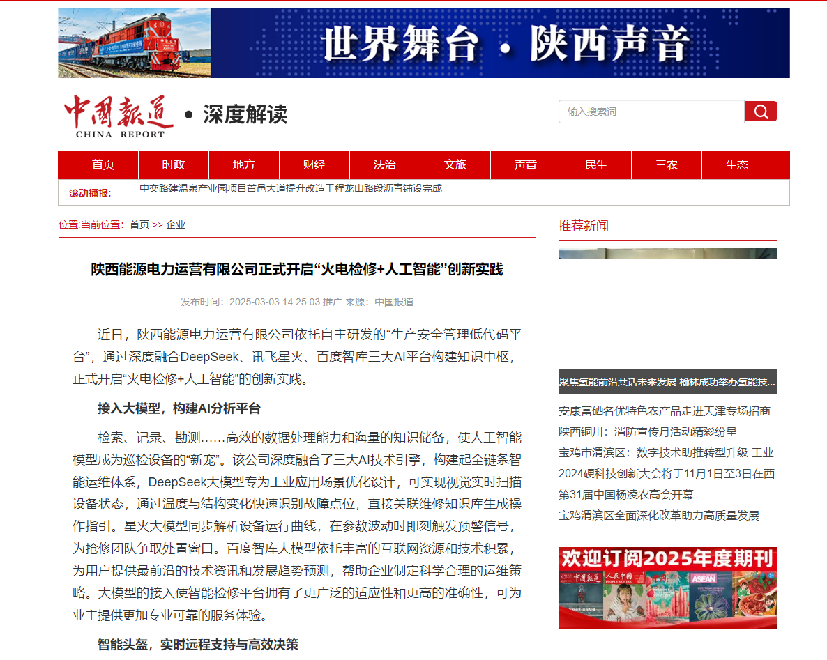 中国报道:正式开启“火电检修+人工智能”创新实践