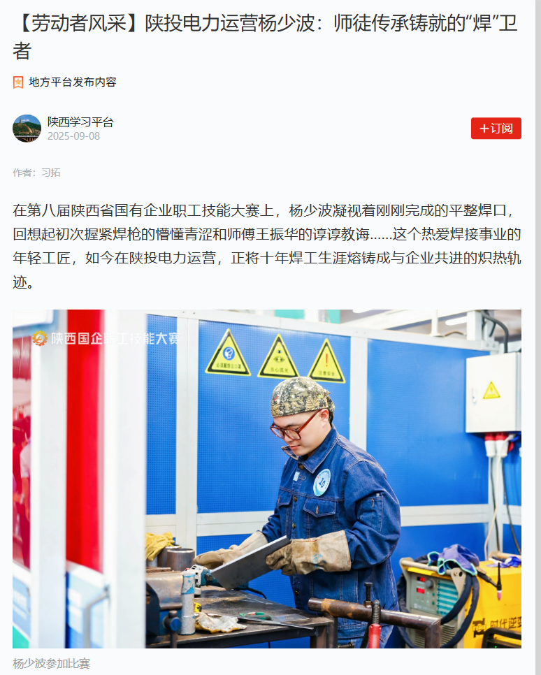 学习强国:电力运营杨少波 师徒传承铸就的“焊”卫者