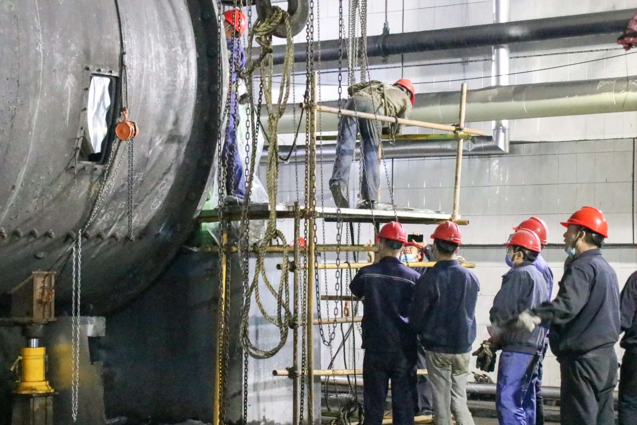 𝐆截止日近几年,经途纯体成员6个白天黑夜的迎战,钳工、电焊工、塔吊工多岗位的协调一致协助,磨煤机罐体已顶起,轴承端盖拆除工程做工作时未心烦意乱秩序井然地来。