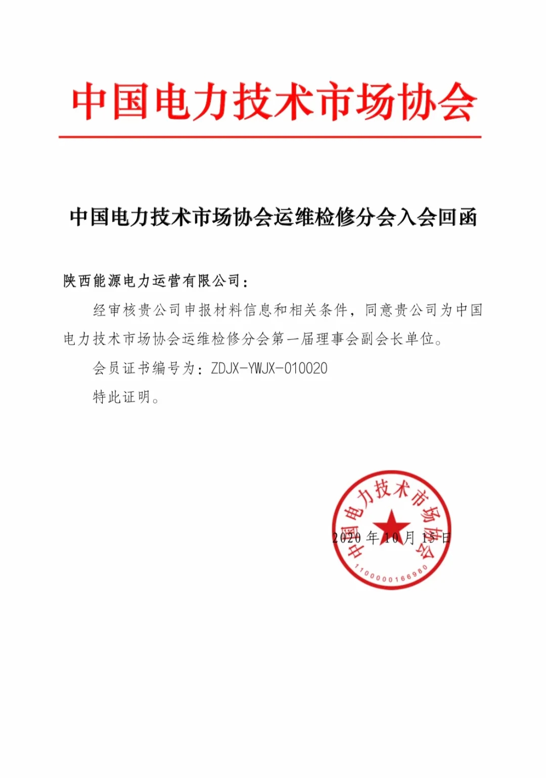 电力运营公司当选电力技术市场协会运维检修分会副会长单位